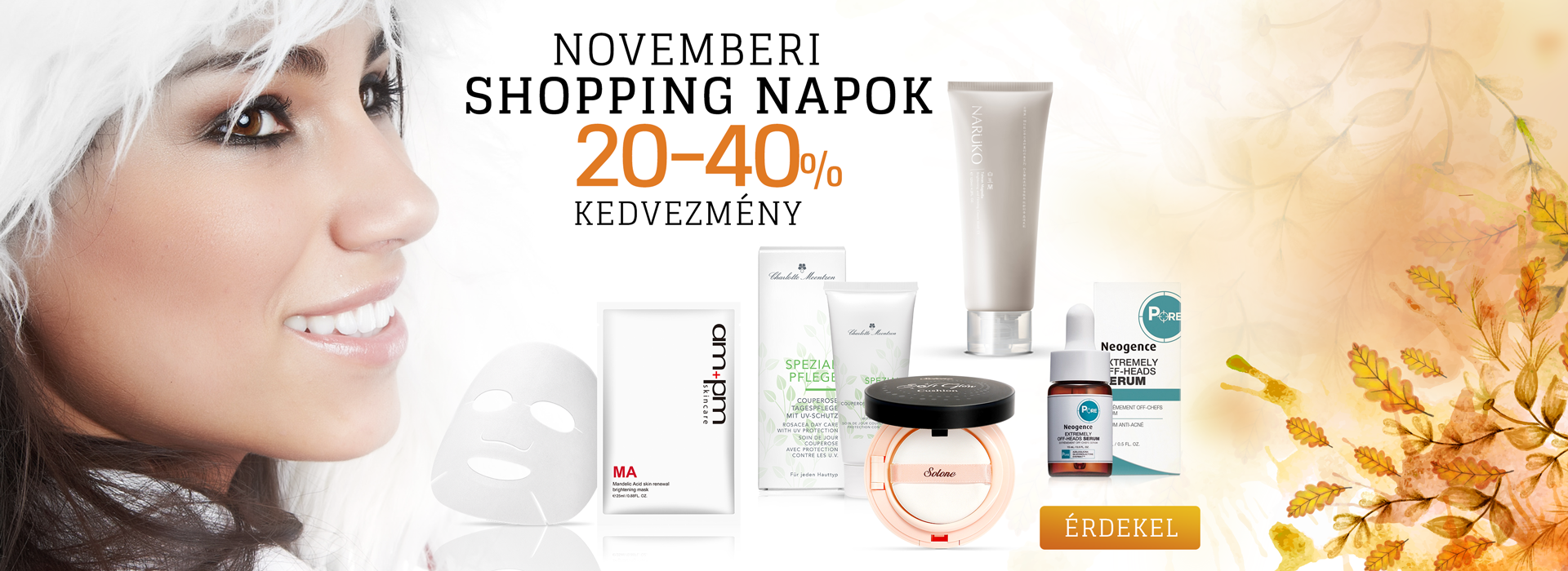 Most a novemberi shopping napok alkalmával kedvezményesen tudod megvásárolni a kedvenc Charlotte Meentzen, Neogence, Narüko, Solone és SwissVita termékeidet, ne várj sokáig mert gyorsan elkapkodják őket!